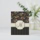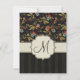 An Eastern European style floral pattern of red and blue flowers and green and brown leaves on a brownish black background on top, with an aged black-on-black aged stripe digital design on the bottom, overlaid by a ribbon and customisable monogram seal.