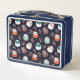 This is a standard metal lunchbox that appears to work just fine. We designed this box ourselves with an uploaded photo and custom text on the front and back. It looks absolutely beautiful except the front of the lunchbox is not centered like it shows in the photo. The print borders don't align with the inset flat part of the box where the preview photo online showed it perfectly centered in there. The back looks nice and centered though.