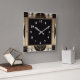 "art deco clock", "art nouveau clock", "black white cream gold", "1920s geometric symmetrical lines", "stylish sophisticated 1920 style", "smart faux golden luxury", "retro vintage luxurious antique", "elegant line semicircle arches", "glamourous glam square clock", "classy classic arch glamour"