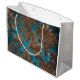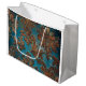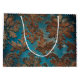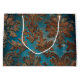 A beautiful brown patina Victorian-inspired damask pattern is over a dark teal background.