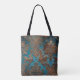 A beautiful brown patina Victorian-inspired damask pattern is over a dark teal background.