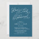 Love's last rehearsal! Let's celebrate our favourite couple's rehearsal night before the big day with this modern simple cool hand written font script on boho dark teal blue.