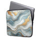 Dark Teal Grey Light Blue Gold Marble Art Pattern Laptop Sleeve
