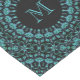 Bring vibrant, calming energy into your home with this eye-catching table runner. The design features an intricate mandala pattern with a mesmerizing radial symmetry in shades of turquoise and teal against a dark, nearly black background. The mandala design is made up of delicate floral motifs and flowing lines that radiate outward like petals, creating a sense of depth and motion.