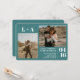Modern simple minimalist initials 2 photos wedding. Add your couple photo, initials or monogram with a simple bold script, dark teal green spice and white.