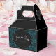 Chic & Stylish-Wedding Gable Favour Box. The Teal Roses Wedding Theme is a blend of modern and traditional floral accents with teal roses contrast and accent the black background wonderfully. These elegant florals are perfect for all your wedding décor and stationery needs. This beautiful design is most suitable for weddings where you have chosen to incorporate a bit of turquoise, and dark blue-green.