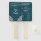 Dark Teal Rustic Wood String Light Wedding Program Hand Fan