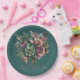 Dark Teal Turquoise Burgundy Floral Bouquet Shower Paper Plate
