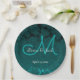 Dark Teal White Turquoise Elegant Wedding Monogram Paper Plate