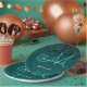 Dark teal white turquoise elegant wedding theme elegant reception dinner decor. Floral monogram pattern custom paper plates. Classy, unique, chic, modern, trendy, stylish, beautiful succulent metallic. Image copyright Marg Seregelyi Photography.