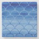 Stylish marble coaster features a dark to light blue scale pattern. Rows of interlocking scales form a geometric pattern that ranges from deep to pale blue. Their outlines, in contrast, range from light to dark blue.