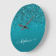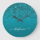 Dark Turquoise Glittery Gradient Girly Calligraphy Large Clock