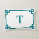 Dark Turquoise Greek Key Border Monogram Decorative Cushion
