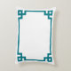 Decorative white and teal Greek Key style geometric rectangular border accent pillow.