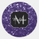 Dark ultra violet purple glitter sparkles Monogram Classic Round Sticker
