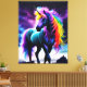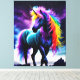 A dark unicorn with a very colourful rainbow mane under a stormy sky