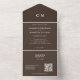 Dark Walnut Brown Monogram QR Code RSVP Wedding All in One Invitation