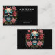 Dark White and Teal Roses Skull Tattoo Artist Business Card