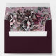 This wedding envelope blends dramatic elegance with botanical charm. The exterior is a deep burgundy, offering a rich, romantic foundation. Inside, the flap reveals a stunning floral illustration—layered blooms in soft pink and moody maroon, accented by silvery gray petals and muted green foliage.