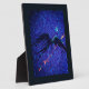 Dark winged figure flying across the space plaque