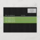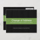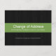 These edgy, modern change of address cards feature a dark wood background. On the front, indented in the wood is a green stripe. The text on the top reads "Change of Address", and is fully customisable. Change this to we've moved or we're moving and add your own messages! The back also features a red stripe with room for your new address, and the address of the people you are sending the postcards too.