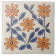 Dark Yellow & Teal Floral Flowers Mediterranean Tile
