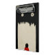 This cute but scary design features a little child in red dress waiting in front of a door in a dark room. The door is surrounded by the shadow monster with an open mouth and sharp teeth. This is a bit spooky but cute design for halloween lovers.