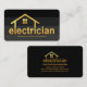 Overleaf, in a black cover, the gold "electrician-home" logo you can use is at the top. This is followed by your prestigious name, the contact details and a slogan option to publicise your services. All lettering are in faux gold.