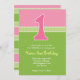 This darling invite is almost as cute as your baby. Your party decor can easily coordinate with this pink and green design. Celebrate their first birthday with style and simplicity!
