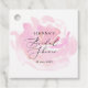 An elegant bridal shower favour tag, featuring a delicate light pink watercolor rose in the background, overlaid with black text, with "Bridal Shower" in modern calligraphy/hand lettered style font.