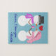 Darling Snowpeople in Love: Light Blue Christmas Jigsaw Puzzle