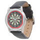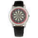 A cool design for those who enjoy playing darts, this watch features a dart board graphic surrounded by a bright red border.