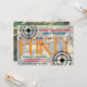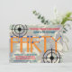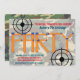 Hosting an epic dart war? This invitation is a perfect way to get your guests ready for the fun battle. Orange and blue darts spell out the word party. The play on the words "you've been targeted" is reinforced with the fun target graphics. A camouflage background creates a trendy backdrop. Kids of all ages will be be excited for this birthday party!