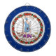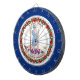 Celebrate Virginia's proud heritage with this dartboard, prominently displaying the iconic design of the Virginia flag. Featuring a blue field with the state seal of Virginia in the centre, surrounded by a wreath of Virginia creeper, this flag represents the state's history and its significance in American culture.