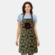 Unique all-over print monogrammed apron with a pattern of dart boards and darts. Darts players will love this black and white darts themed apron, with a monogram circle to add your own initial