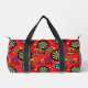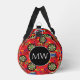 Darts player colourful dartboards and 180s patterned duffel bag, with a monogram area at one end to add your own initials or text