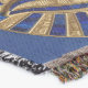 A quality printed throw has its advantages. This is a much finer weave throw than its loopier cousins, and though lighter, it is worth the investment for custom room accessorizing. The back is much prettier than the typical brown, and the fringe on the long sides very vivid, the selvage nicely done. Before photographing, I washed the throw in cold water, delicate, with a thicker woven throw the same size. On tumble dry low, this throw was dry in half the time as the other. This is a very practical quality if you use throws for furniture covers or to wrap up in frequently. The sleekness of the fabric makes it a great layer for accenting or protecting without the feeling of sitting on too much stuff. Perfect for napping or when you feel a light chill coming on. The color printing is beautiful and on this fabric, matched the design and color of my Photoshop image. This is an advantage for blending room fabrics and colors. The fringe on the short sides prints the colors from the design image and therefore varies from the side fringe. I streaked a white fractal line through the plaid pattern to give the illusion of weaving. This printed as crisp as an illusory thread, and put some white in the short side fringe, showing another advantage of print vs loomed- for artistic purposes, line lines, detail, and color integrity can be planned and preserved. My loomed throws have color limitations and more of a needlepoint texture. Print throws reproduce an exact image. The throw felt a little stiff straight out of the package, but this went away in the first delicate wash. Of course I searched the wash water for ink or bleeding and there was none.