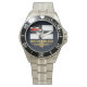 Has heft and feel of expensive stainless steel quartz watches. Good band with safety catch. I removed links, which is easy because engraved arrows show direction to push the linking pins. As always by this seller, the image (a railroad logo) is a perfect reproduction of my emailed image, and is precisely spaced and aligned.