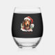 Daschund Dog Christmas Santa Hat Xmas Light Woofy Stemless Wine Glass