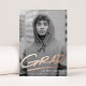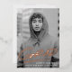 Modern graduation announcement featuring the graduate's vertical photo with "Grad" in real rose gold foil handwritten lettering with a dash below. Personalise the trendy photo graduation announcement by adding the graduate's name and school name. The rose gold foil graduation announcement reverses to display a pattern of black and white dashed brushstrokes.