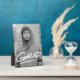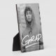Celebrate your graduate's achievement with a personalised graduation photo keepsake. The plaque features the graduate's vertical photo with "Grad" in white handwritten lettering with a dash below. Personalise the graduation photo plaque by adding the graduate's name, school, and graduation year.