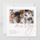 Share cheer with these colourful and modern holiday cards featuring 3 of your favourite photos (one square and two small horizontal or landscape orientated). "Merry" appears in casual, modern hand lettered script in an on-trend earth toned desert rose shade. Personalise with your custom holiday greeting, family name, and the year along the bottom. An eyecatching choice in a unique rounded square shape for your Christmas 2021 greetings.