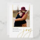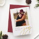 A modern and elegant holiday card featuring a vertical or portrait-oriented photo accented with gold foil trim. "Joy" appears beneath in casual hand lettered gold foil script typography. Personalize with your custom holiday greeting, family name, and the year. A chic and modern minialist choice for your Christmas 2022 cards.