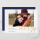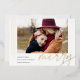 A modern and elegant holiday card featuring a horizontal or landscape-oriented photo accented with thin vertical foil stripes. "Merry" appears beneath in casual hand lettered gold foil script typography. Personalize with your custom holiday greeting, family name, and the year. A chic and modern minimalist choice for your Christmas 2022 cards.