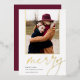A modern and elegant holiday card featuring a vertical or portrait-orientated photo accented with gold foil trim. "Merry" appears beneath in casual hand lettered gold foil script typography. Personalise with your custom holiday greeting, family name, and the year. A chic and modern minimalist choice for your Christmas 2022 cards.