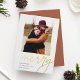 A modern and elegant holiday card featuring a vertical or portrait-oriented photo accented with gold foil trim. "Merry" appears beneath in casual hand lettered gold foil script typography. Personalize with your custom holiday greeting, family name, and the year. A chic and modern minimalist choice for your Christmas 2022 cards.