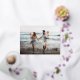 Perfect for those living in tropical climes, or for sharing a faulty vacation photo, or optional holiday photo card features "Dashing Through the Sand" as a gold foil text overlay adorned with starfish illustrations. Personalise with your names and custom greeting (show with "warmest wishes") along the bottom. Cards reverse to a pattern of white starfish on navy.