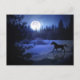 A fun postcard featuring a running horse in the snow and moon light. A fun way to send holiday greetings