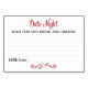 These darling Date Night idea cards will be the perfect compliment to your wedding reception or party. This design features a combination of black and red fonts, with a heart banner as an accent, asking your guests to leave a note with their best date ideas. The card has space available for guests to leave their date ideas and their name(s).