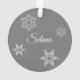Cute snow globe with red car and Christmas tree with date on the front and simple snowflakes and name on the back.